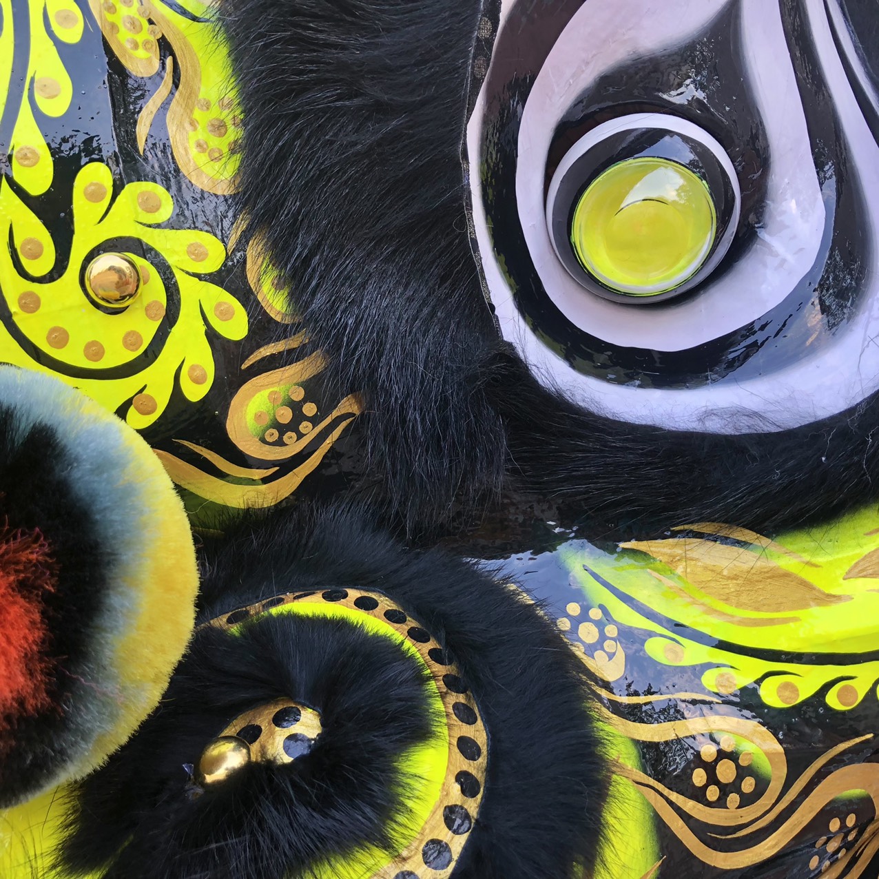 - Mắt lân theo 2 màu : trắng và đen . Tròng mắt theo tông màu đầu lân.